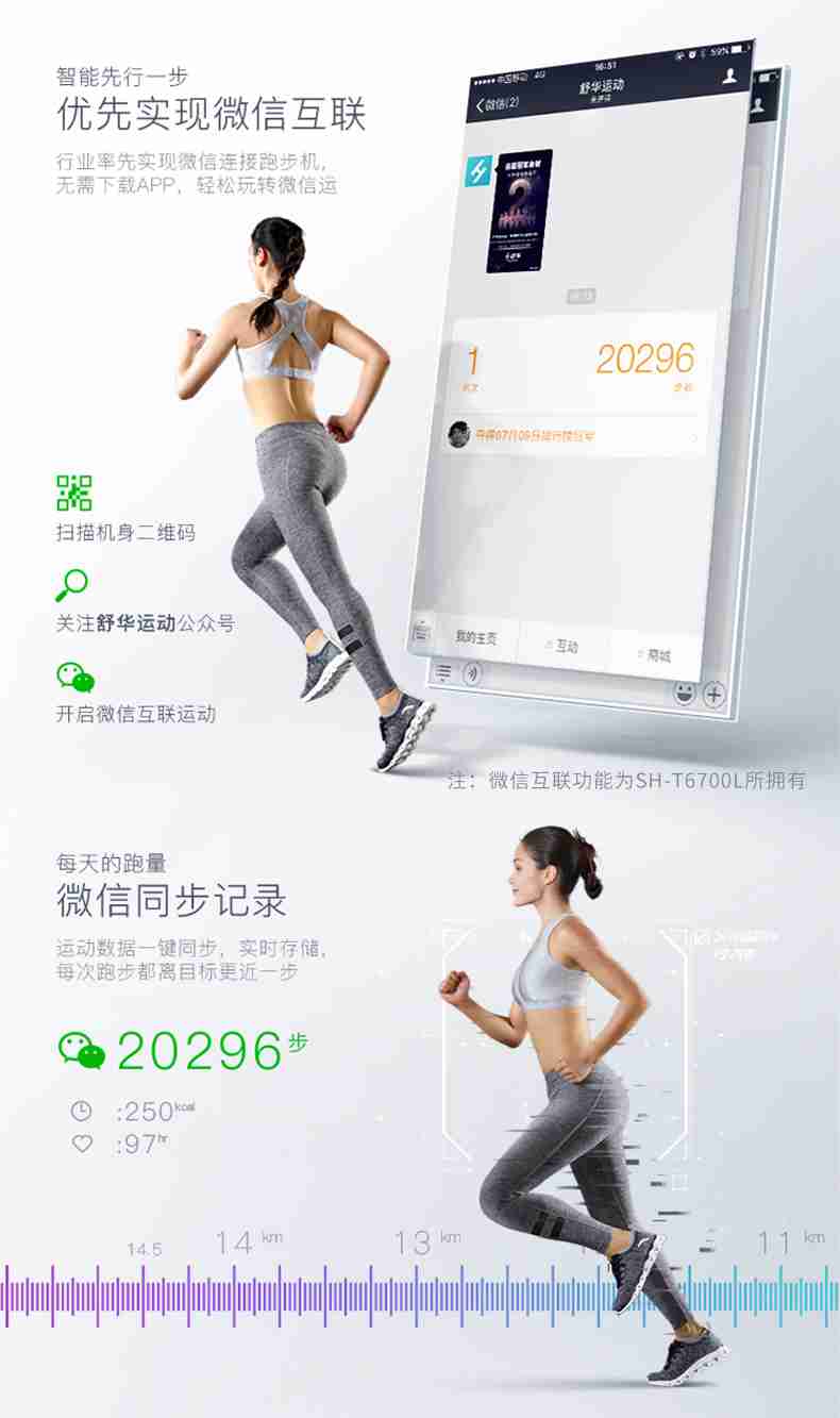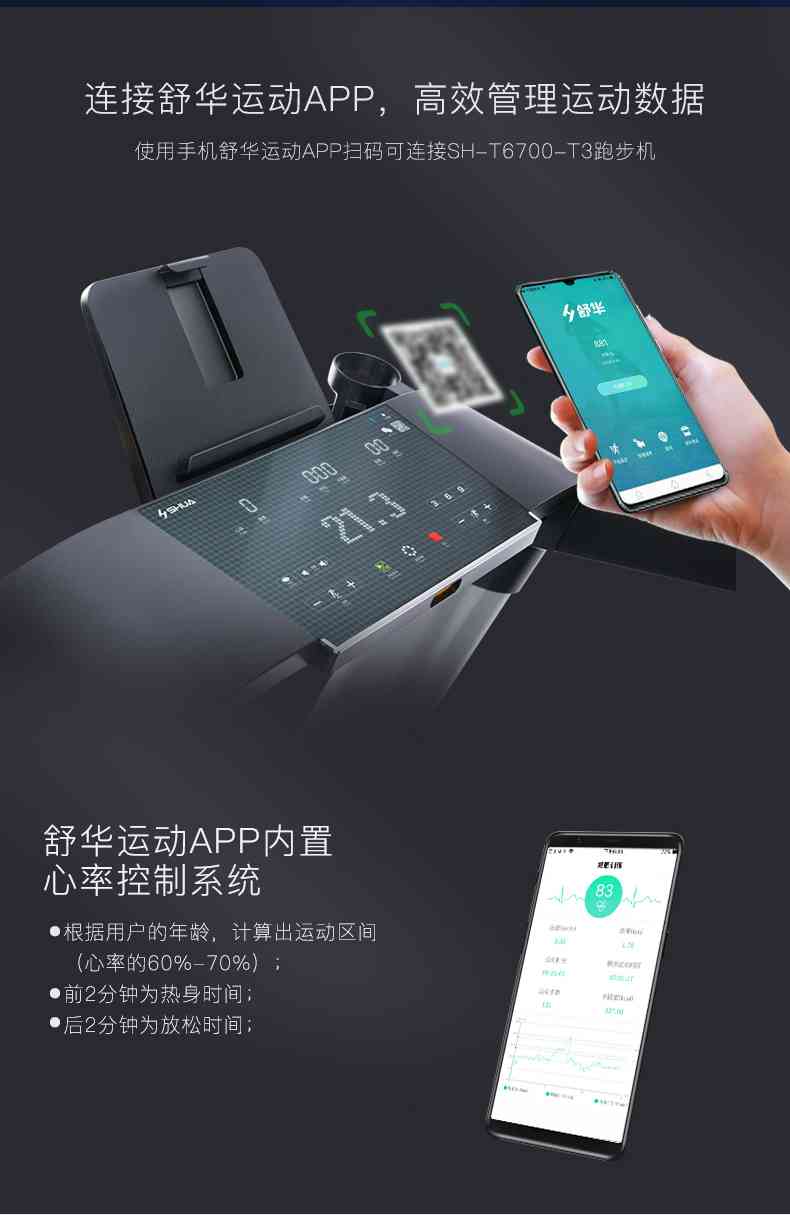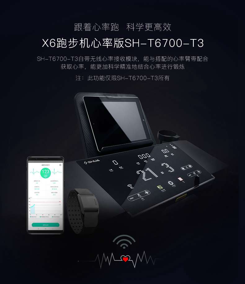 SH-T6700-T3跑步机为了帮助用户进行更加科学有效的运动,搭载米兰APP连接心率臂带实现心率控制,通过监测运动心率从而实现科学运动。