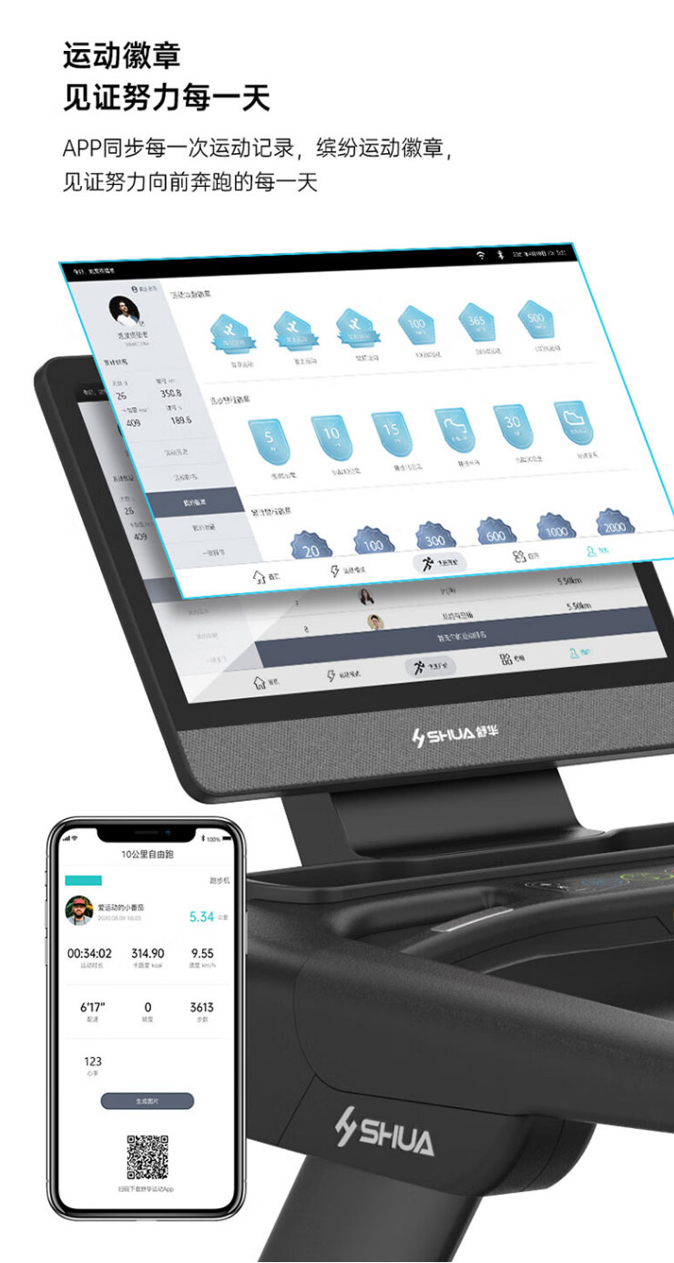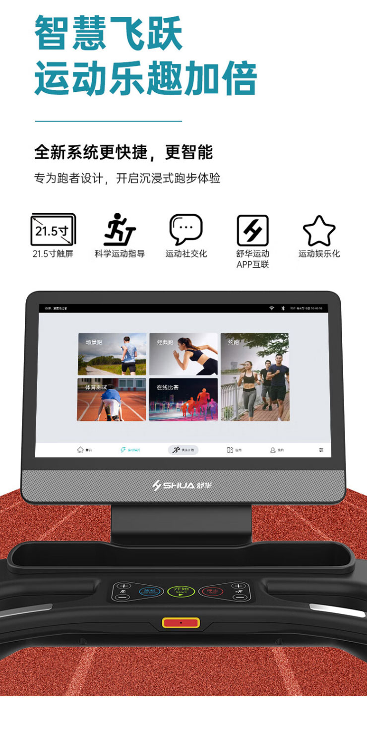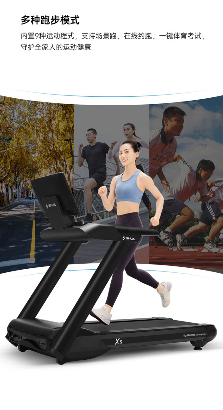 内置程序:搭载米兰跑步机系统3.0 :4种程式(5km 往返、间歇、登山、燃脂)+体育考试+倒计模式:时间/距离/ 卡路里+在线约跑+地图跑+米兰运动+应用软件