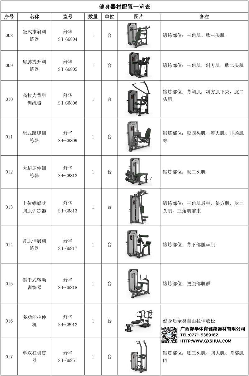 14.米兰背肌伸展训练器SH-G6817*1台-主要针对背部肌肉群进行锻炼,能够有效增强背部肌肉的力量和耐力,塑造完美的背部线条,对于改善体态、预防和缓解背部疼痛等问题也有一定的帮助。配备了多档位的调节功能,可以根据使用者的身高、臂长以及不同的训练阶段和训练目标,灵活调整训练的角度和阻力,满足个性化的训练需求。