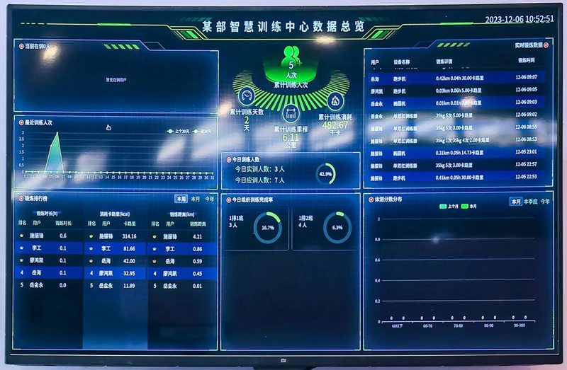 对于军警智慧化管理训练而言,保密是第一要义,因此该训练管理系统采用局域网连接各类智能有氧、无氧训练器材、智能体测仪等智能设备,采用国产麒麟服务器系统,构建了安全稳定的运行环境;运动数据实时上传后至台,通过多维度分析,帮助教员建立完整的训练数据库,根据运动数据进行对比分析,从而更科学、高效地指导训练,进一步提升训练效率和体能表现。