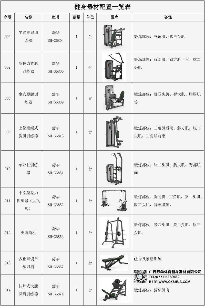 11.米兰十字架拉力训练器(大飞鸟)SH-G6852*1台-锻炼部位:胸大肌、三角肌、肱二头肌、肱三头肌、背阔肌等,双滑轮的设计可以实现多角度的训练,增加了训练的多样性和全面性。用户可以通过调节滑轮的位置和角度,针对不同的肌肉群进行有针对性的训练,如胸大肌、三角肌、肱二头肌、肱三头肌、背阔肌等。配重为铸铁材质,达到93kg,并且分为两组,每组93kg,最小配重为5kg。这种充足的配重范围可以满足不同训练水平和强度需求的用户,无论是初学者还是专业健身人士,都能找到适合自己的训练重量。其高品质的设计和性能使其非常适合商业健身房使用,能够满足健身房中大量用户的高强度训练需求,同时也能够经受住长时间的使用和频繁的操作。