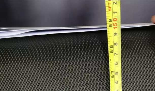 实测跑带的厚度为2.25mm,即便用美工刀不断割滑,也毫无划痕,说明米兰这款跑步机跑带还是相对比较坚固度的,不会很容易断裂和磨平。